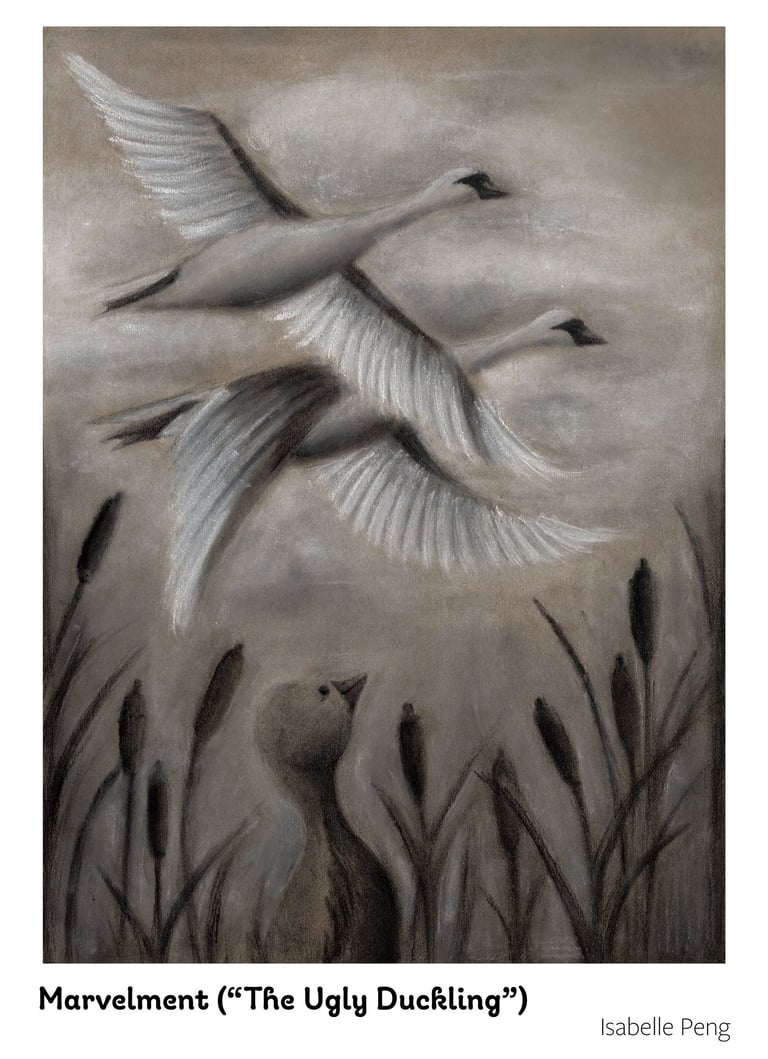 However, there were some bright patches in my journey. The Ugly Duckling and the Witch Bakery were two of my favorite assignments! I also learned how to take my own reference in my Thumbelina piece, even though the execution could have been better. I'm excited to take what I learned to bring into Illustration II.
