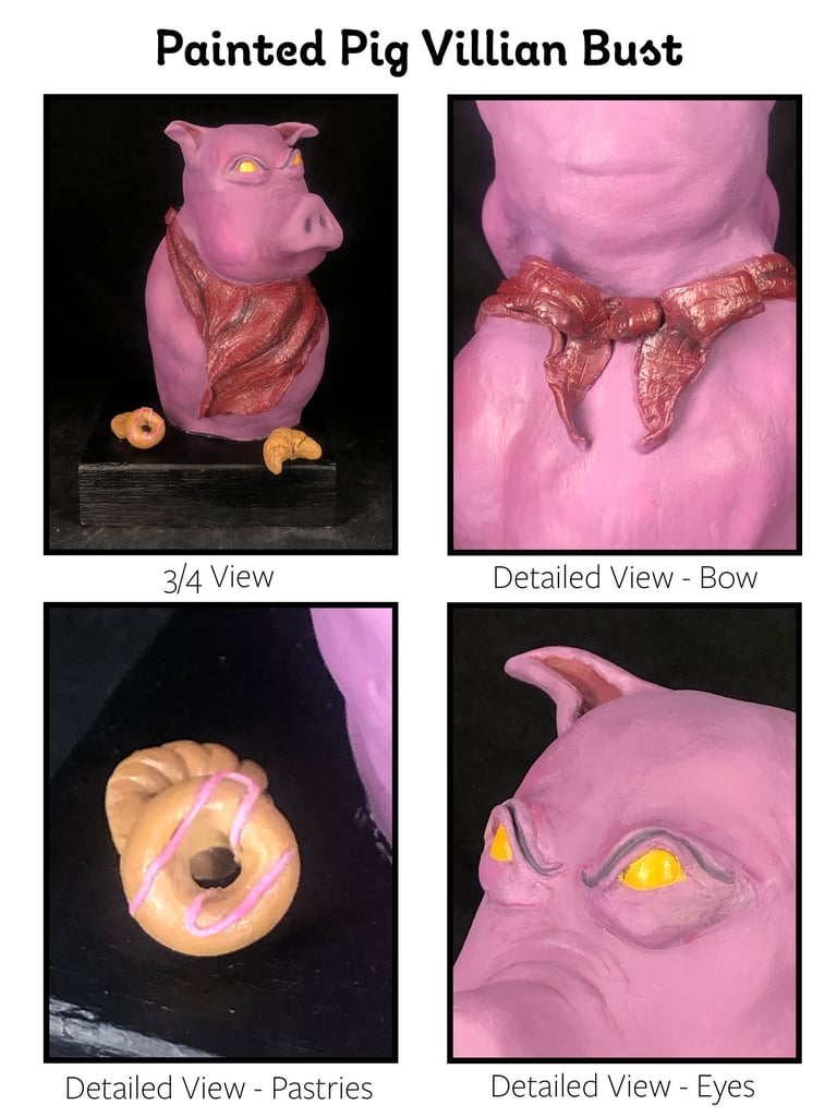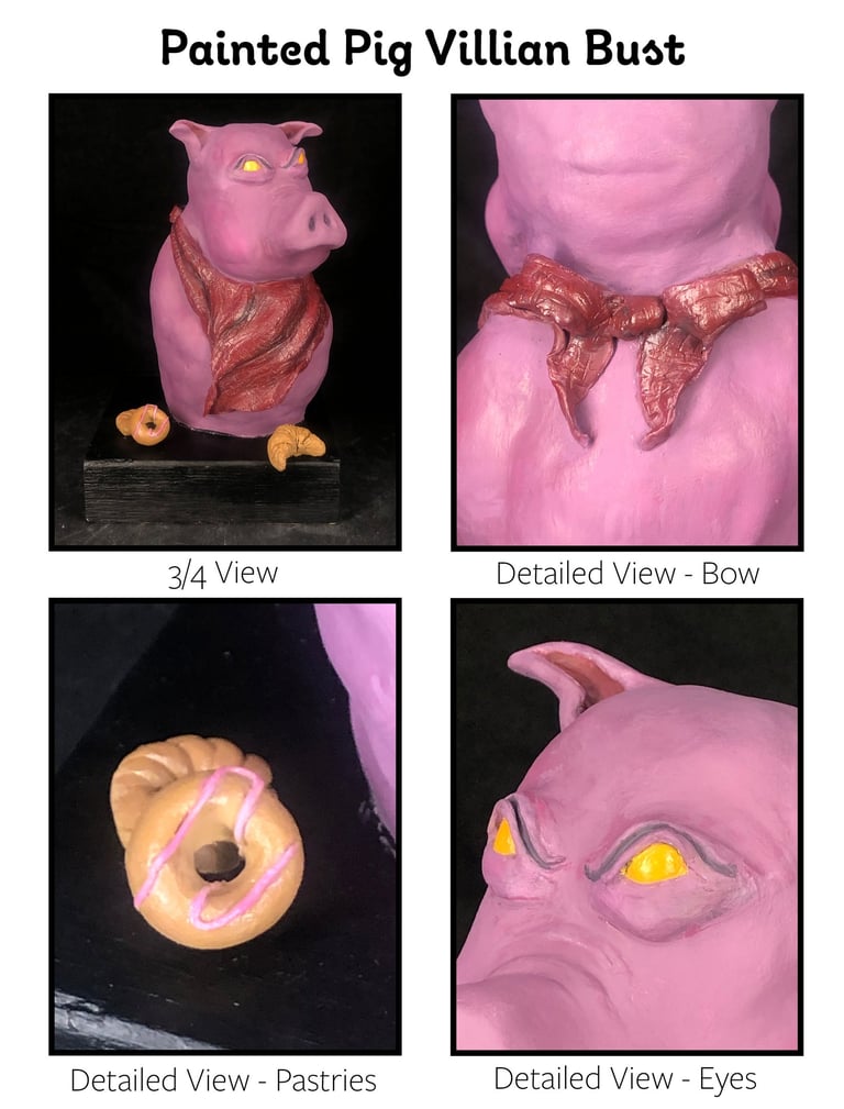 First character on the block - The Villain. After the baby pig got refused a cookie, he was furious at the baker's selfishness. So, he cursed the baker, "Cookie by day, 'chef' by night." Now, every morning, he vowed to find the baker and eat him for revenge! I found sculpting the pig challenging, but I had so much more fun with the environment project because I loved making delicious goodies. :) Making the bakery was the turning point for me; I began to LOVE 3D. ^^ I think I like making food art more than characters, haha.