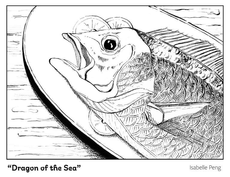 I do enjoy pen and ink so this was one of my favorite assignments in the semester. We all had to do a "fish" (defined by anything in the sea, haha). My professor suggested to me to do a fish that I liked to cook with. Originally, I was going to do salmon but I realized red snapper was so much more enchanting!
