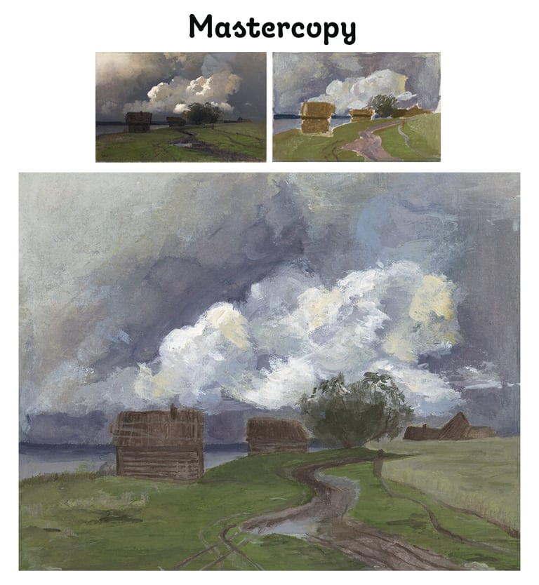 In general, I love this painting except for the face of the "bonus Mastercopy," I like to call it. I had a lot of challenges, including my first time painting a hand. But in the end, I was quite satisfied with the result. My only wish was that I pushed at the edges more.